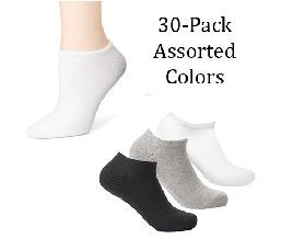 Womens No Show Socks – White, Black, Grey: 30 Pair