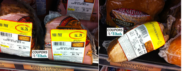 Save $1/1 Kentucky Legend Ham or Turkey – Smith's sells these yummy little hams and turkeys for $0.99 lb (turkey) or $1.99 lb (Ham).