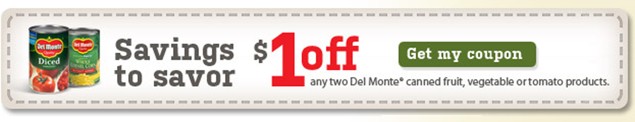 Take the Del Monte “Can Do” quiz via their Facebook page and you'll be rewarded with a printable coupon valid for $1 off 2 Del Monte Brand Fruit, Vegetables or Tomatoes Products.