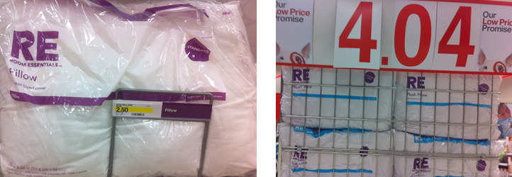 Room Essentials Pillows $2.50 (soft) – $4.04 (firm)