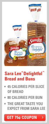 While you're on the site, try refreshing the page a few times and see if you spot the .75¢/1 Sara Lee Delightful Bread coupon. It has popped on the right side for me several times now. Bread coupons are rare and Sara Lee goes on sale all the time. It's a great coupon to have handy. Press your browsers back button and print two!