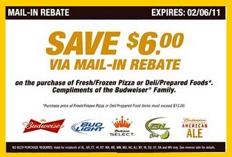 In Utah you don't have to buy the beer to send in for the rebate. If you've never seen on before they come on a tear pad and are usually found on the beer isle. Although I have found them in the BBQ section on around party type displays like a Superbowl display. With the playoff's in full forces we should be seeing them around.