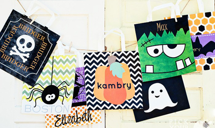 Check out the fun personalized Trick or Treat bags on PickYourPlum.comĀ for only $4.99. The Bags measure a roomy 15″ x 15″ and include up to 15 letters of the message of your choice. There are seven different designs that will make it easy to choose one to go with your little ones costume.