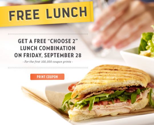 Macaroni Grill has put up a coupon on Facebook valid for a FREE “Choose 2″ Lunch combination on Friday, September 28th, from 11AM-4PM. You can show the coupon on your mobile phone or print it out. First 100,000 ONLY.