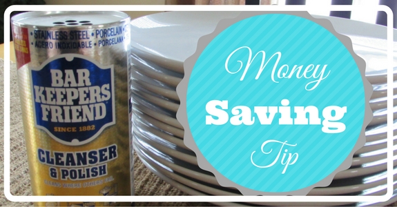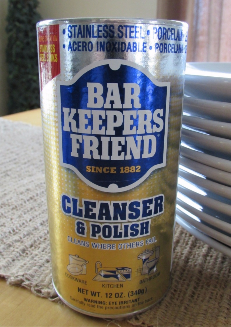 I was about to buy two new dinnerware sets (even at IKEA, it would have set me back between $40-$80) when a friend told me to try Bar Keepers Friend. I had never noticed this cleaner on the cleaning isle before. This can was less than $2.00, so it was worth a try.
