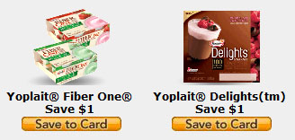 2 of my favorite Cellfire coupon match-ups are back. Yoplait Delights and Fiber One Yogurt. Load the Cellfire coupon here and print the $1.00/1 Yoplait Delight coupon found here and the $1.00/1 Yoplait Fiber One printable here and you will be able to get $2.00 off 1 package of each.