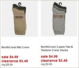 NorthCrest Rib Crew 3 pack socks (several colors) $3.49 – $4.99 as low as $1.16 per pair