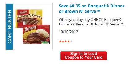 Smith’s Cart Buster Coupons October 10, 2012JoaniLeave a CommentContent may be sponsored or contain affiliate links. View full disclosure. Reminder: don't forget to load you Smith's Exclusive coupon Today's is for $0.35/1 Banquet Brown and Serve coupon – $0.65 after coupon Thanks, Jackie! ShareTweetPinShareShareTweetPinShare