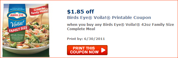 Save $1.85 on one Birds Eye Voila 42 oz Family Size coupon PRINT
