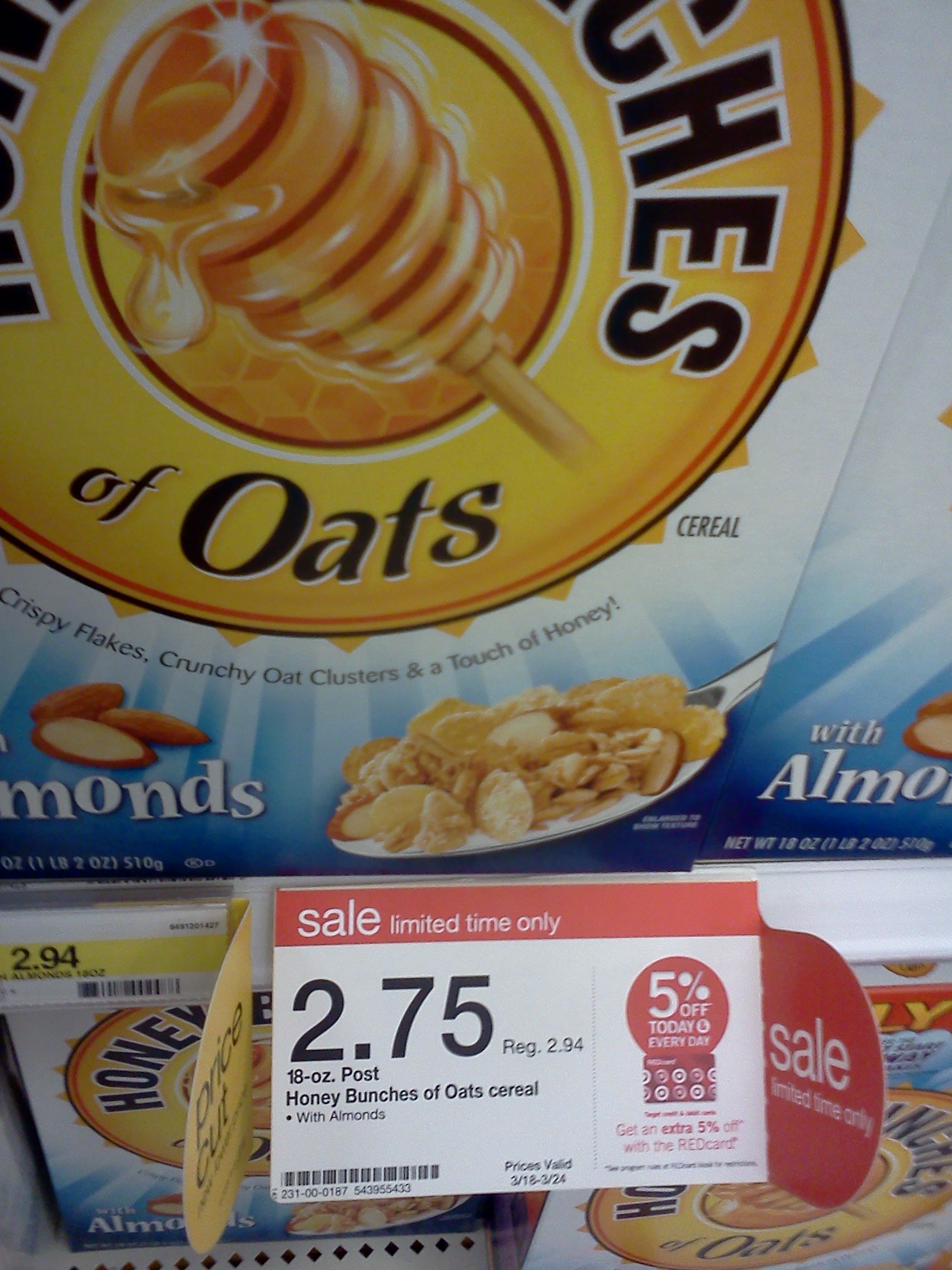 ** Note there are other varieties of Honey Bunches of Oats on price cut for $2.75 (no coupon for these varieties, but still a great price for the Family Size boxes).