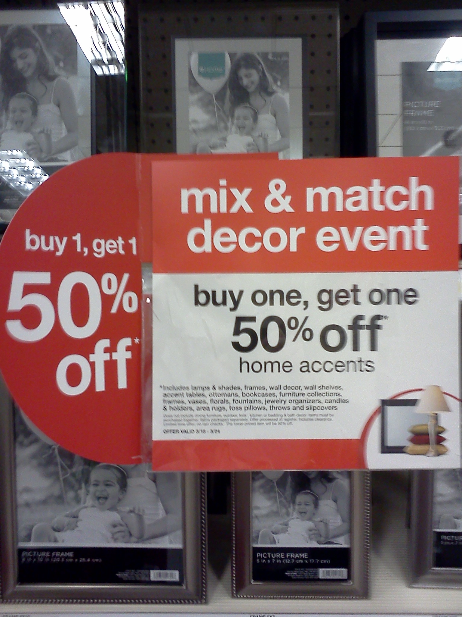 Buy One Get One 50% Off Home Decor; such as lamps, art, vases, ottomans, bookcases and more. I saw frames starting at just $2.99 – so just $4.86 for TWO frames.