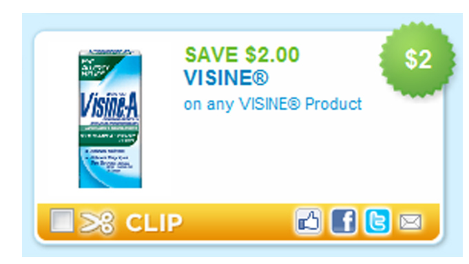 The $2.00 off ANY one Visine coupon is available again. There is not a size restriction on this. So, you can use it at Target, Walmart etc. to pick up the travel size FREE.